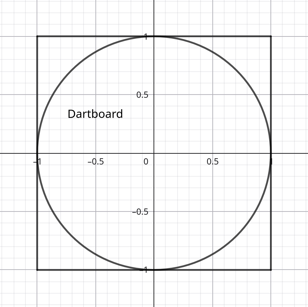 Figure 2: The algorithm throws darts at a dartboard and estimates pi by calculating the ratio of hits to throws